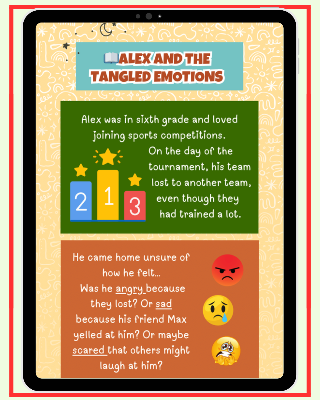 😖 Hide their feelings ➔ Unlock emotion-naming games and "I feel…" sentence starters.